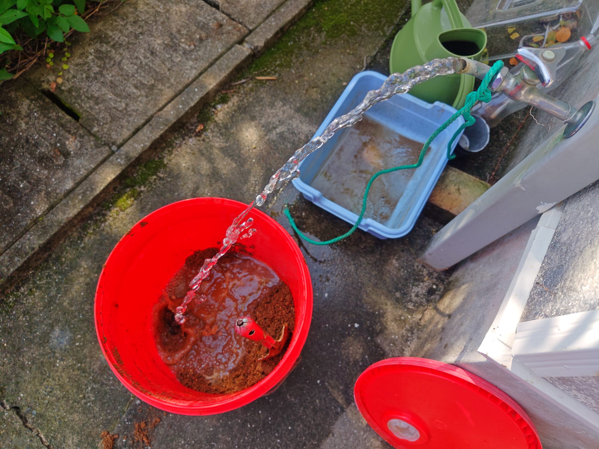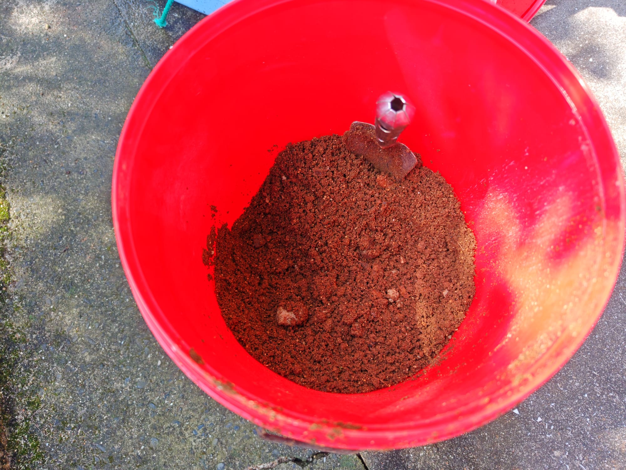 With the size of my bucket and the clay content of the soil, I only needed to fill the bucket about a third-full for extraction. I also tried soil from a nearby tended field, which was a slightly different color. The clay there, being a darker grey-brown as opposed to the red-brown of the construction site, had vastly different properties.