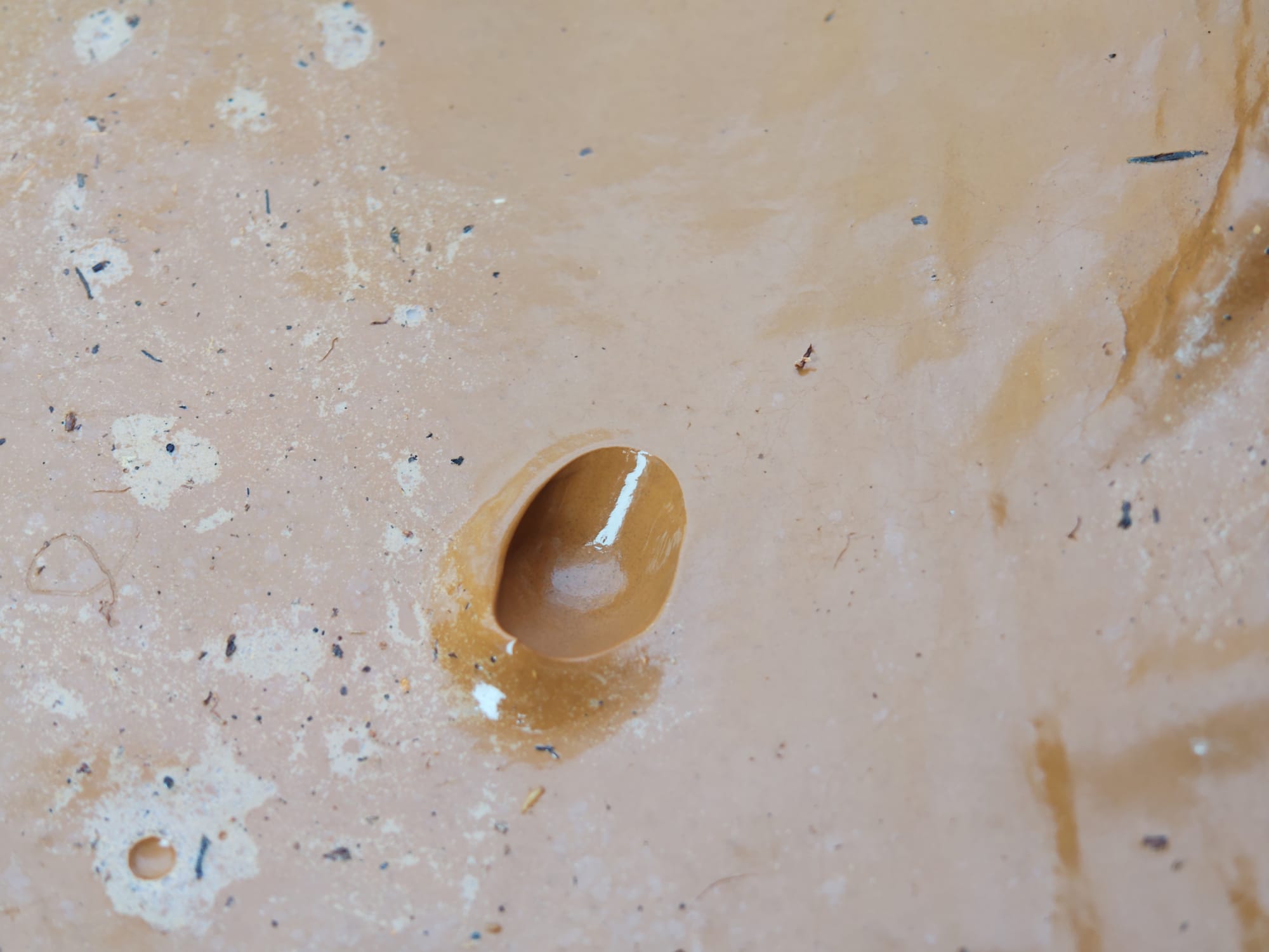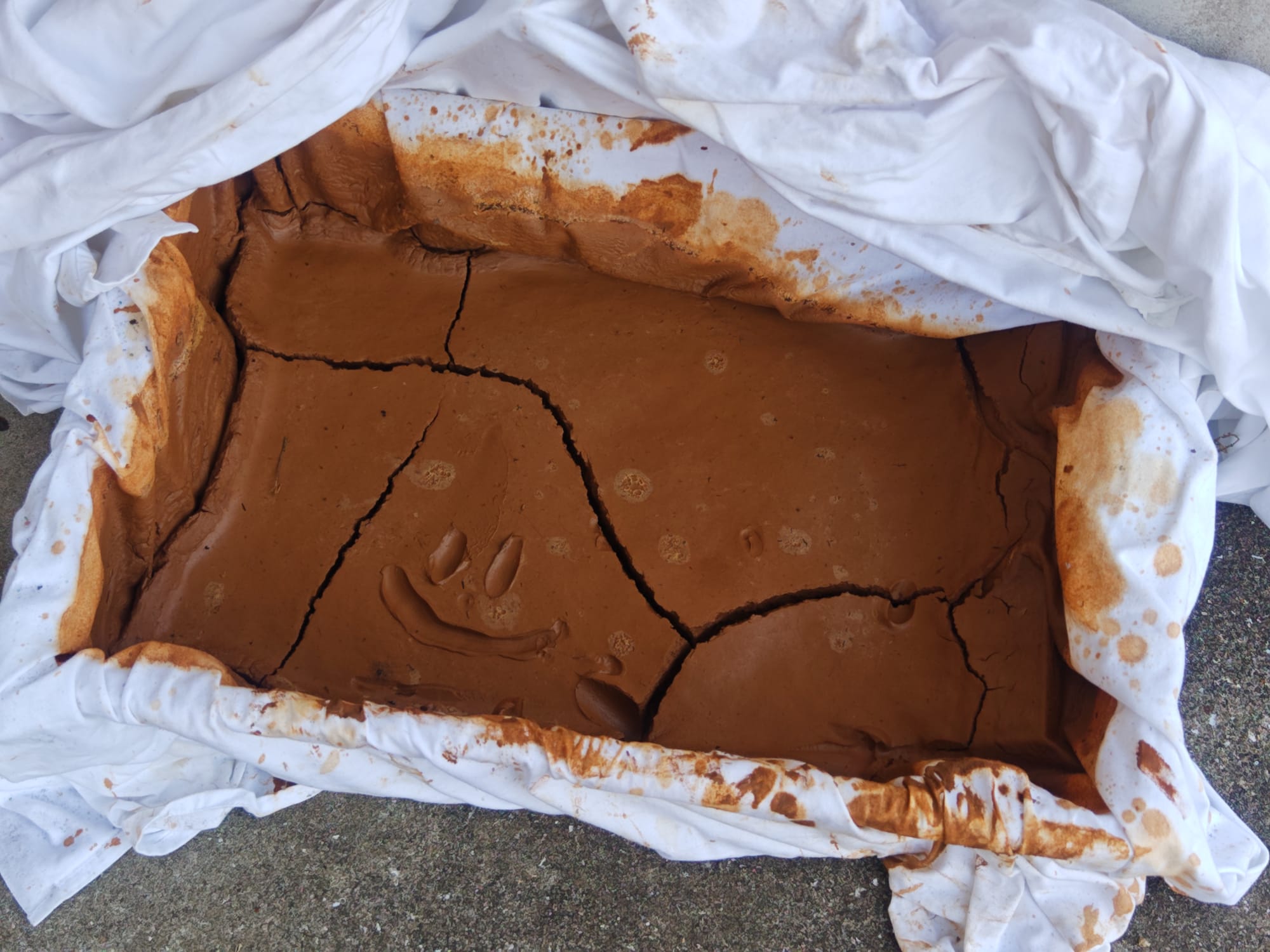 The clay basin 1 day after decanting (top) and 4 days after (bottom).