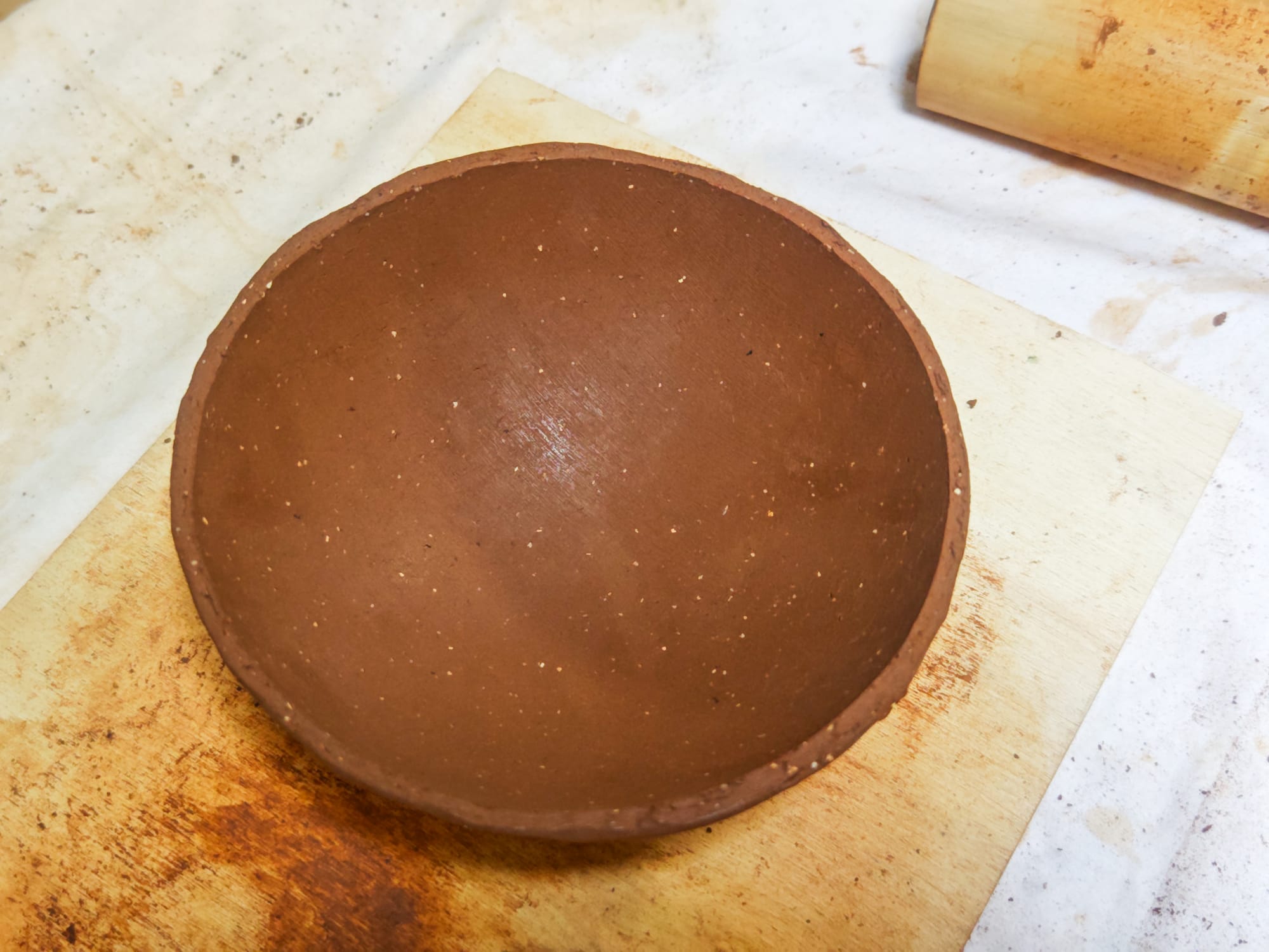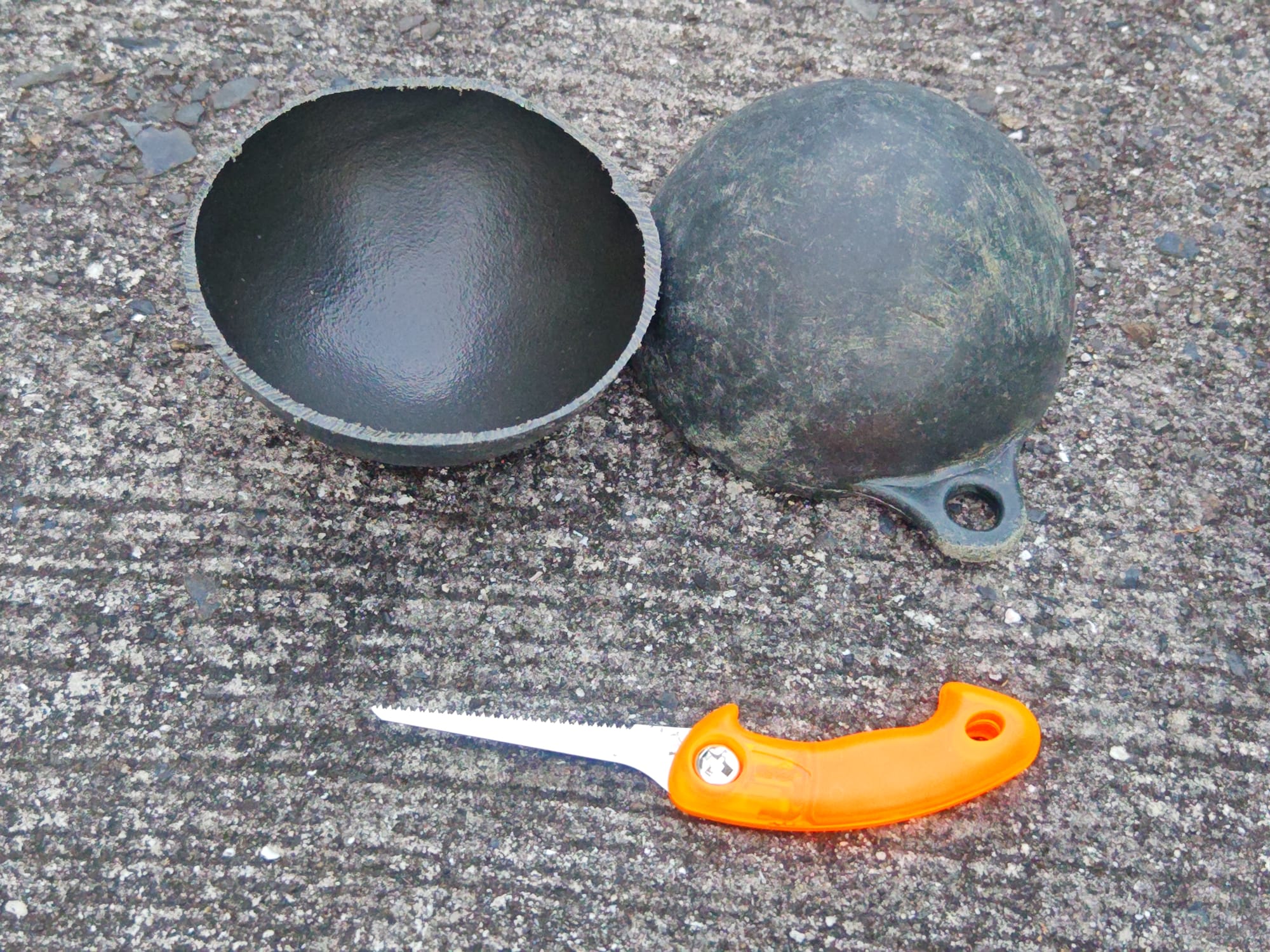 With these tools, I was able to make some fairly well-shaped bowls. Using the curvature of the outside of one of the hemispheres cut from the buoy, I made a reliably round shape without a pottery wheel for throwing.
