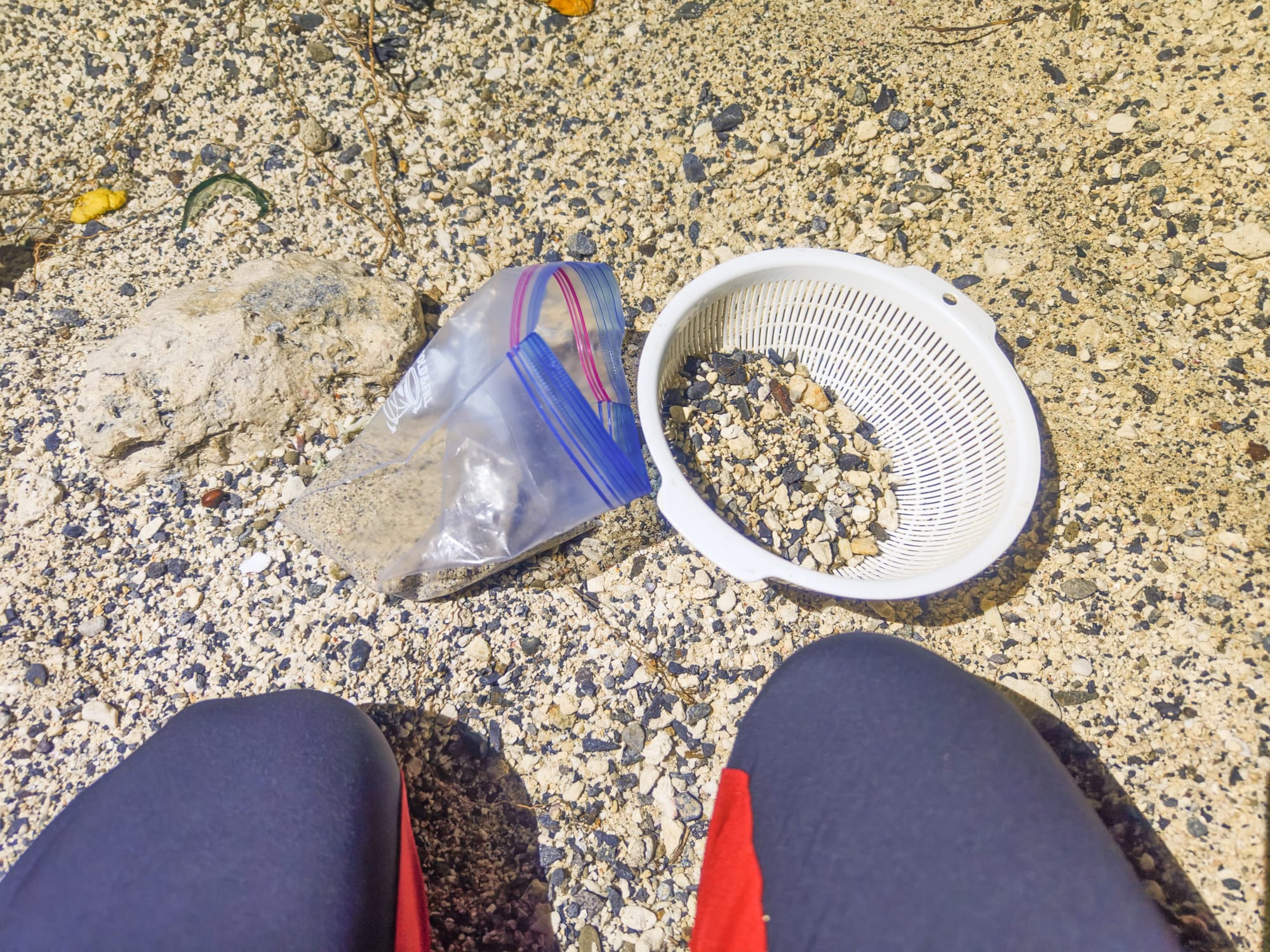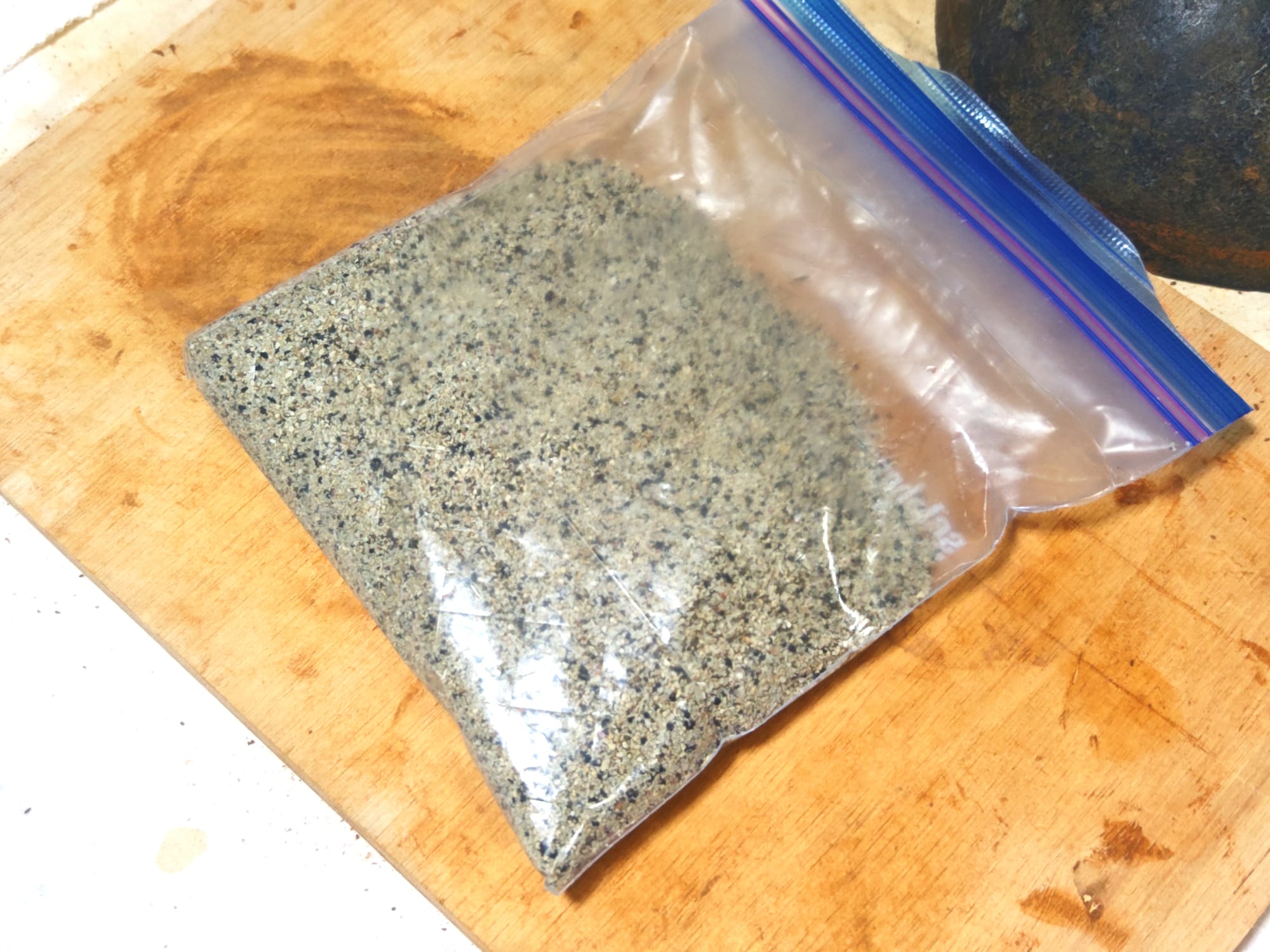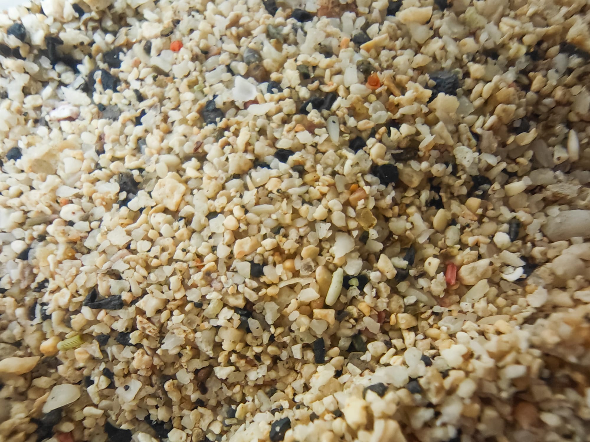 By running the sand through a strainer, I got relatively consistent grain size, however the constitution left something to be desired. As the local sand consists primarily of shell and coral fragments, it is rather coarse and granules are irregularly shaped. Furthermore, shells are mainly made of calcium carbonate.