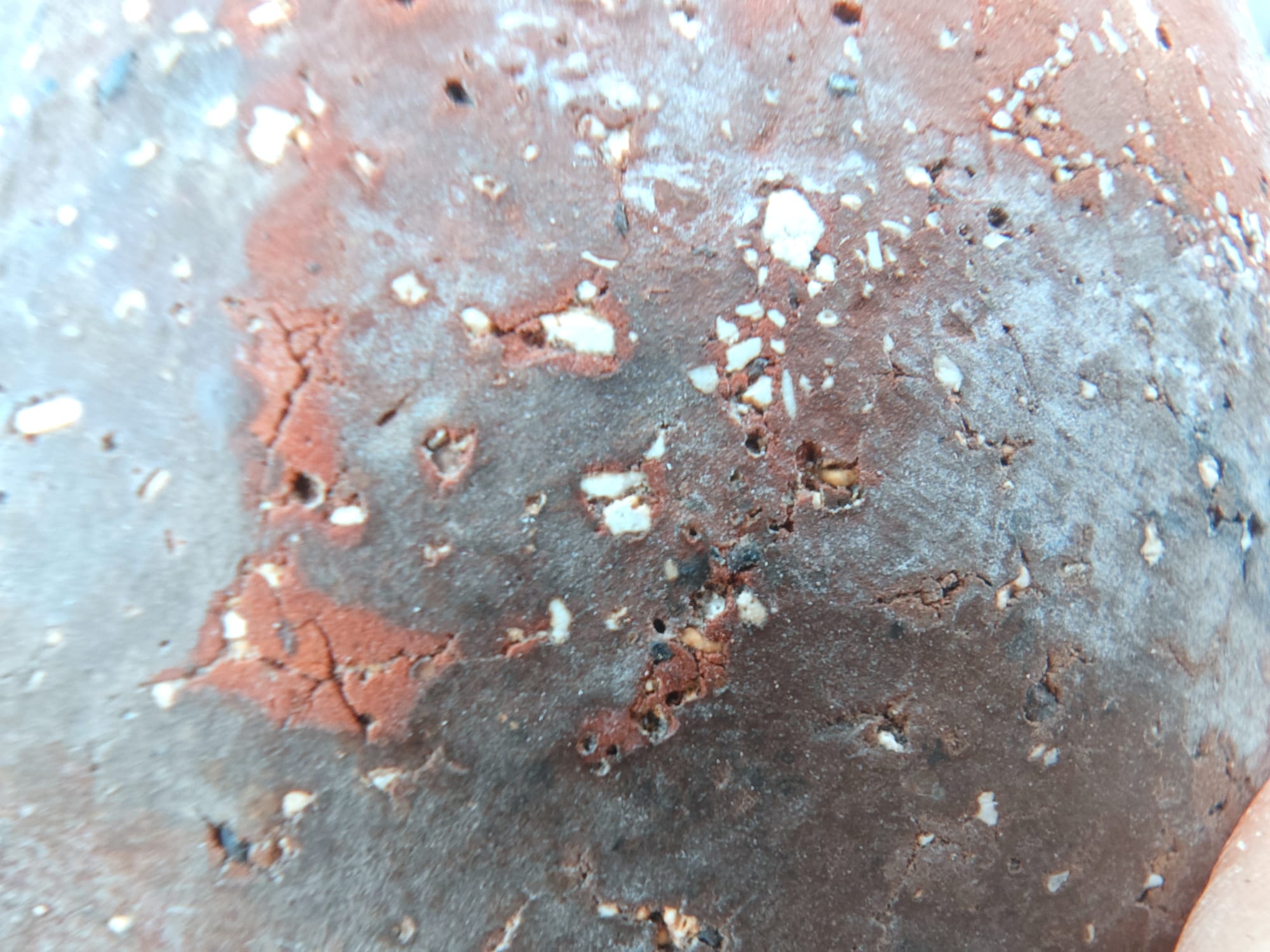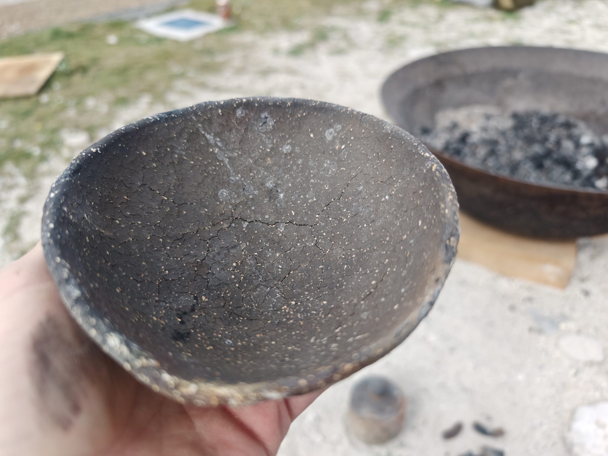 While the temper helped to prevent cracking during drying, this reaction became very relevant, later, during the firing stage.